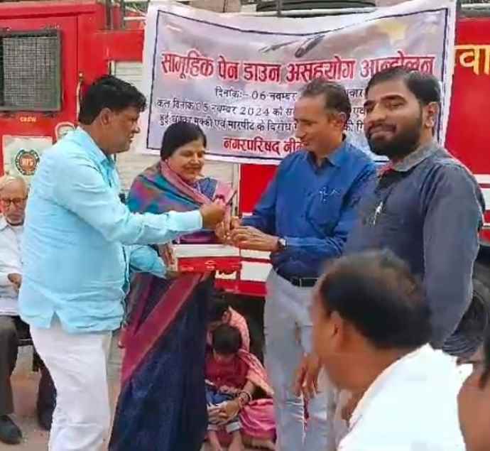बता दे कि 5 नवंबर को ठेका सफाईकर्मी अनुभव प्रमाण पत्र बनवाने की मांग को लेकर प्रदर्शन कर रहे थे। इस दौरान सफाई कर्मी एईएन के चैंबर में मांगों को लेकर विरोध किया। एईएन से धक्का मुक्की की गई। मामले के बाद एईएन मामराज जाखड़ ने मारपीट का मामला दर्ज करवाया था। आरोपियों को गिरफ्तार करने की मांग को लेकर नगर परिषद के अधिकारी और कर्मचारियों ने पेन डाउन हड़ताल कर दी।